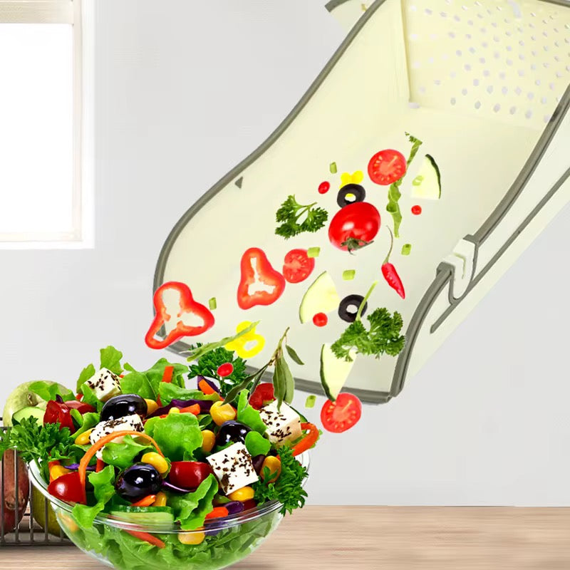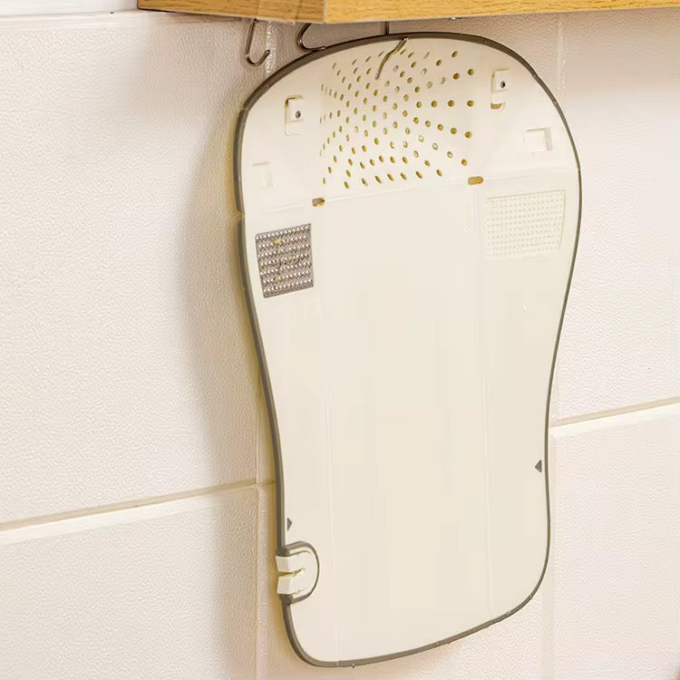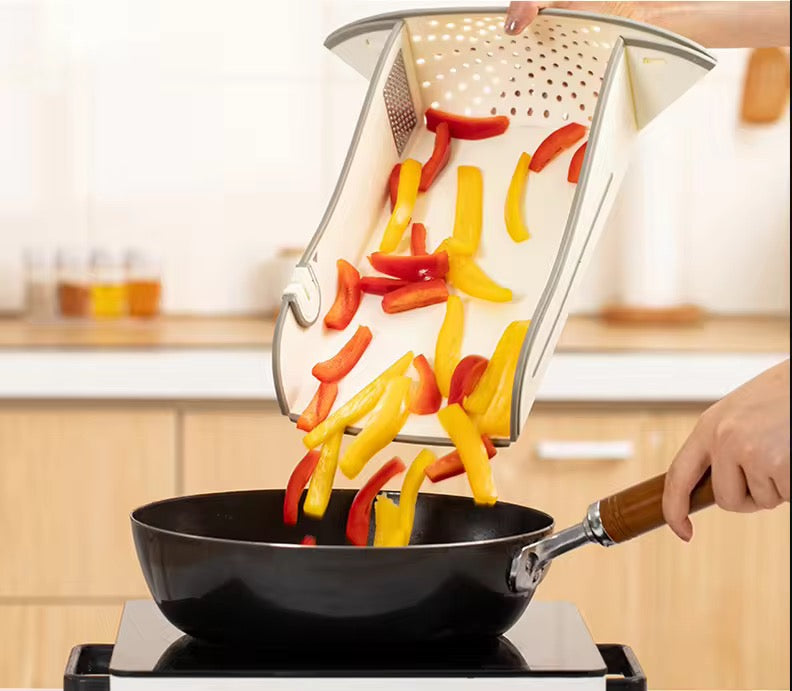 Introducing our 6 in 1 folding cutting board, the perfect kitchen essential for any home cook or professional chef. This versatile board combines six essential kitchen tools into one, saving valuable counter space and making meal preparation a breeze. With its durable, 100% BPA-free construction, this cutting board is built to last and is dishwasher safe for easy cleaning. The built-in grater and grinder allow you to quickly grate cheese or spices directly onto your food, while the knife sharpener keeps your knives in top condition. The non-slip edges and collapsible design make this board stable and easy to store, and the integrated measuring guide ensures precise measurements every time. Whether you're slicing, dicing, grating, or sharpening, our 6 in 1 folding cutting board has got you covered. The fruit knife is included.